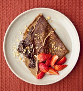 Chocolate pancakes with chocolate hazelnut spread