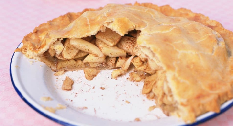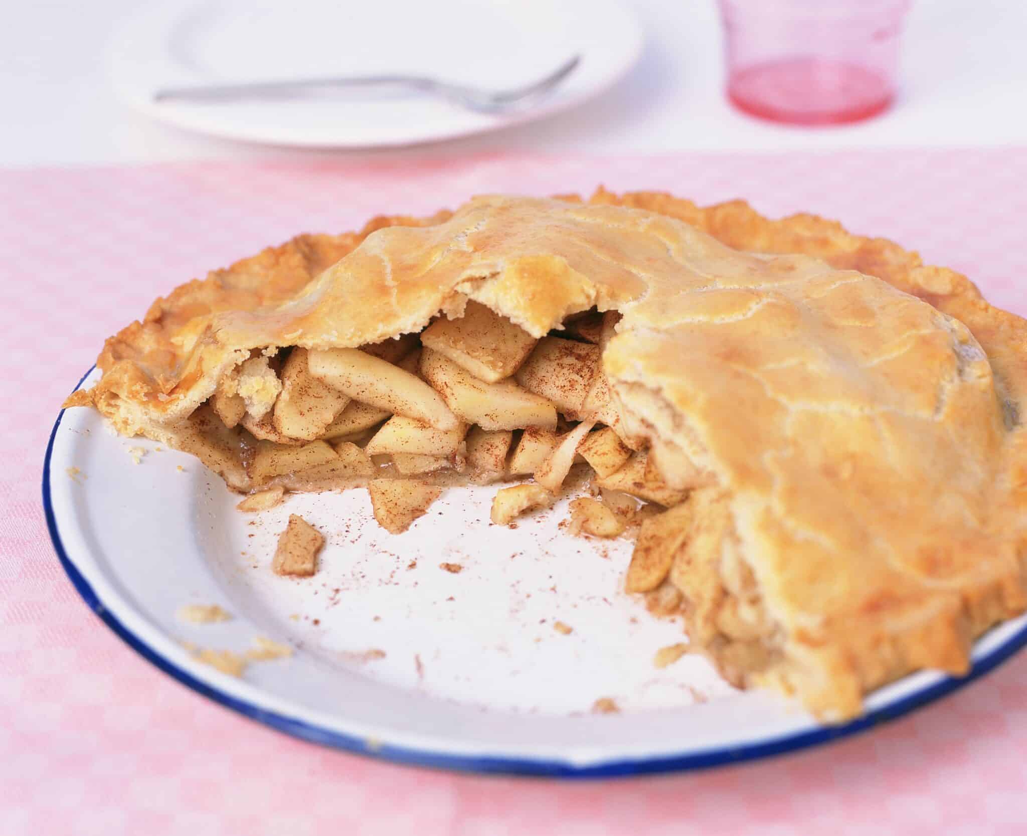 Bake the pie in the centre of the oven for 25-35 minutes, until the pastry is golden, and the apples feel tender when a skewer is pressed through one of the holes in the top. Remove the pie from the oven and serve it hot, warm or cold. Not suitable for freezing.