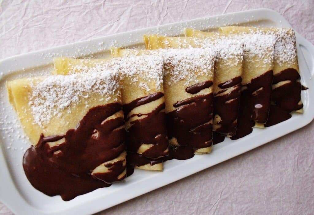This specialty is often flamed, although this was not specified in Károly Gundels original recipe. To flame the pancakes, drizzle 1-2 tablespoons of high-proof rum over the pancakes, and ignite carefully.