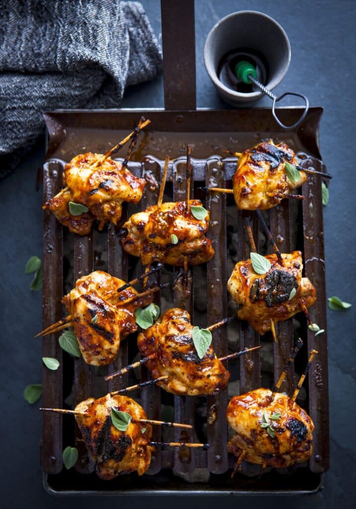 4.      Cook over a hot grill for 20 mins, turning as needed, until the chicken begins to char and the juices run clear when a sharp knife is inserted.