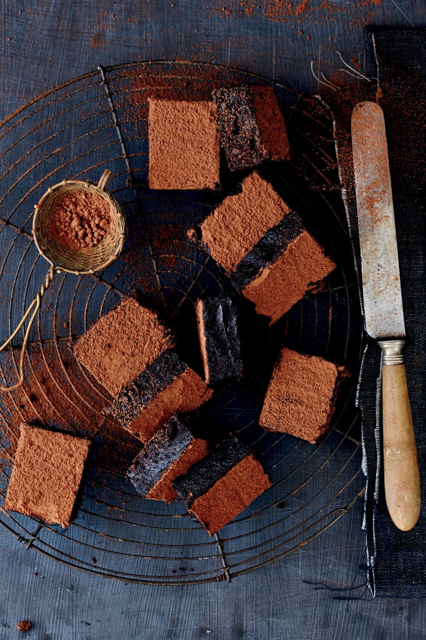 4. Remove from the oven and cool. The cake will become firmer as it cools. Cut into squares. Dust with extra cocoa powder, if you prefer.