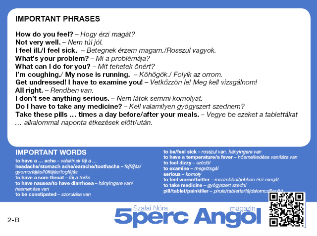 Health (orvosnál, fogorvosnál, gyógyszertárban, baleset)