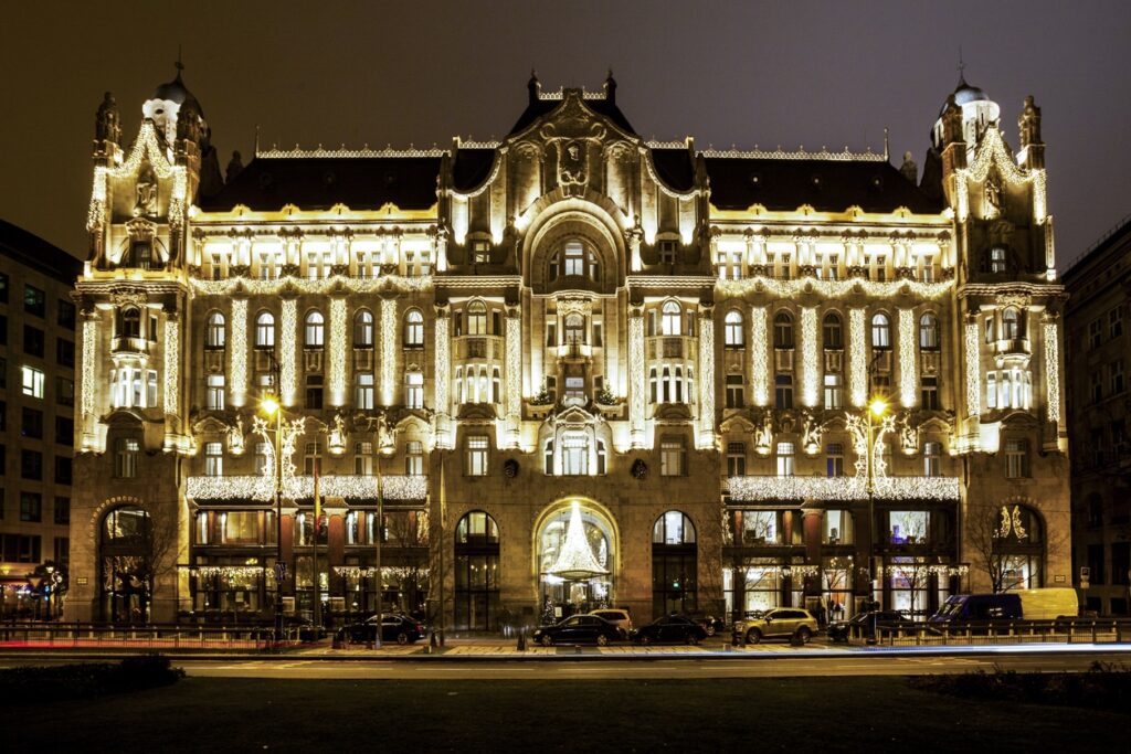 The building was built in 1907 based on the plans of Zsigmond Quittner and the Vágó brothers and it operated as the headquarters of the London-based Gresham Life Assurance Company. Since 1987, the building has been part of World Heritage. With flowing lines, beautiful ironwork (including two magnificent peacocks at the gate of the courtyard), and ornamental decorations inspired by floral motifs, this building is a typical representative of Secession. With stained glass windows, wide sweeping staircases, and incredible mosaics it’s one of Budapest’s most magnificent buildings. The bust of Sir Thomas Gresham adorns the façade of the building near the top. At present, after having been restored to its original grandeur, the building houses the luxurious Four Seasons Gresham Palace Hotel that opened in 2004 providing 179 guest rooms to the visitors.