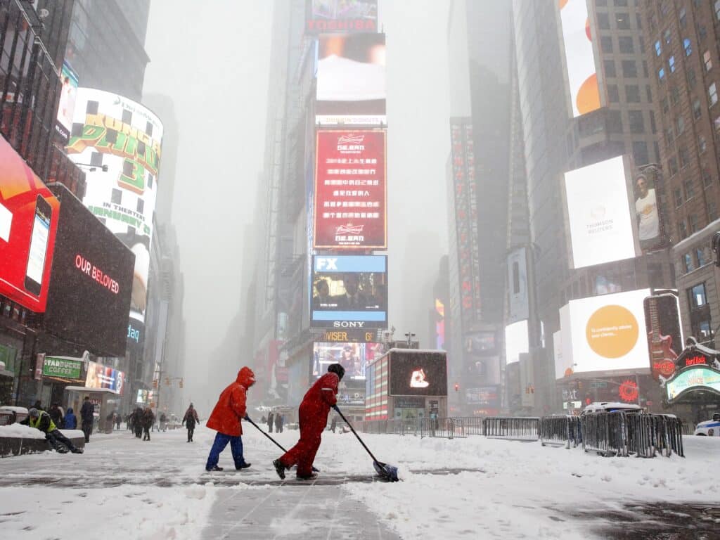 Broadway resumed shows, which were canceled on Saturday, and museums reopened, as snow plows quickly cleared the main avenues and temperatures hovered at about 32 degrees Fahrenheit (zero Celsius).