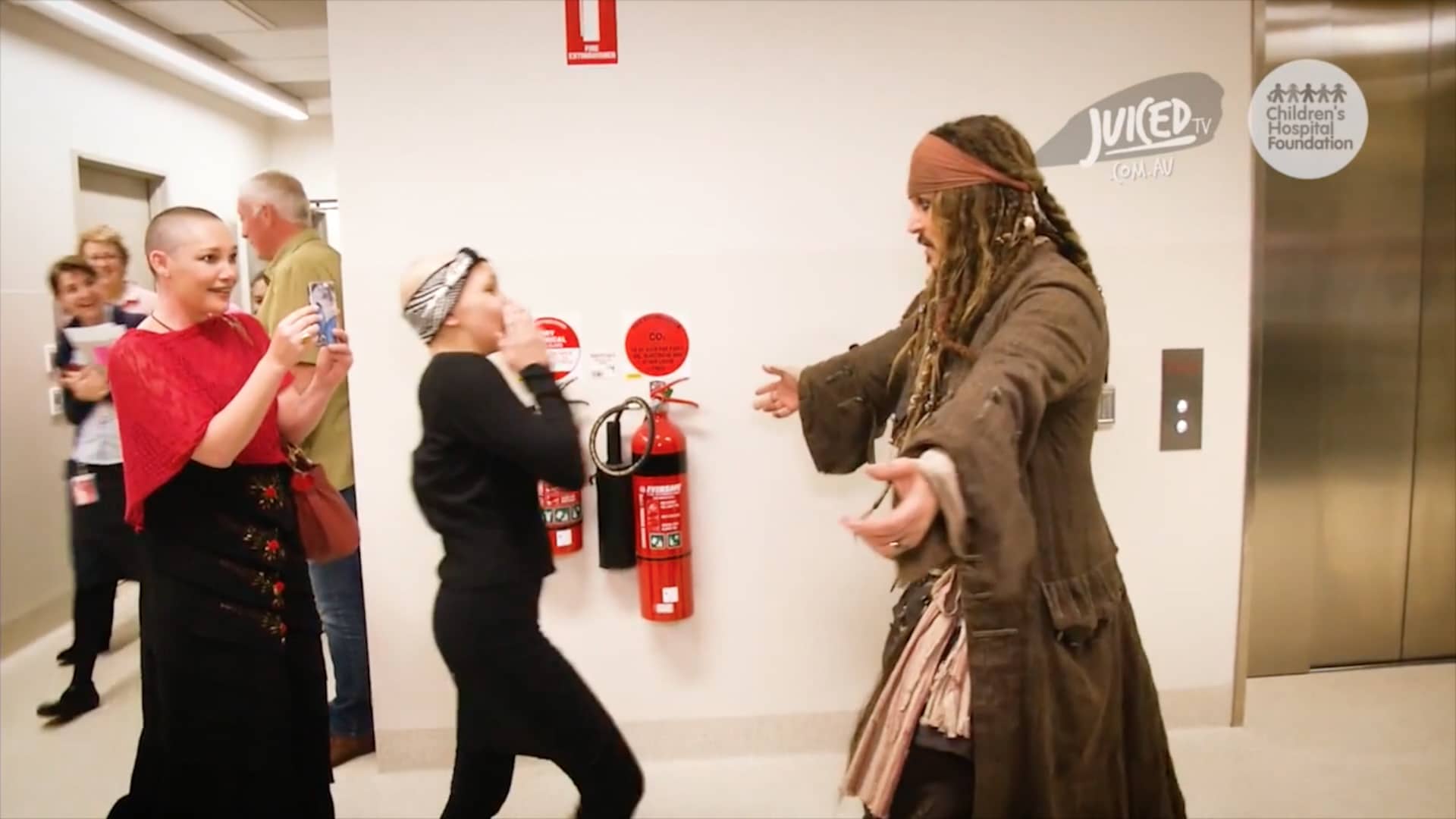 Pirates Of The Caribbean star Johnny Depp has surprised children at a hospital in Brisbane by turning up in character as Jack Sparrow.