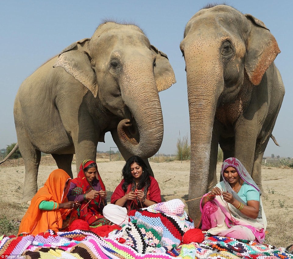 Women in a village near the Wildlife SOS Elephant Conservation and Care Centre in the northern city of Mathura in India reportedly began producing the colourful, pyjama-like garments after staff at the centre warned temperatures were approaching sub-zero at night.