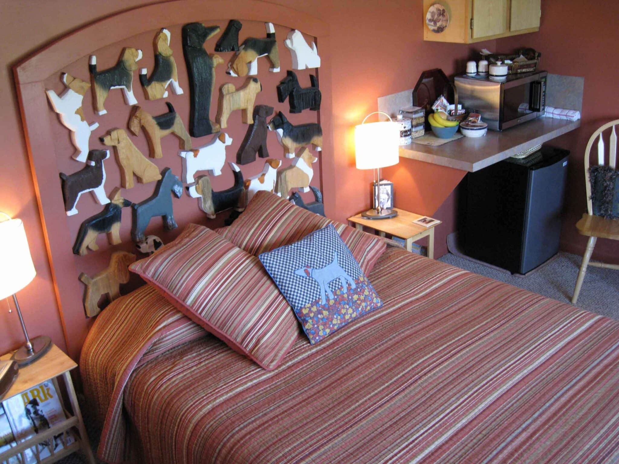 Toby is a 3.65 m tall statue, while Sweet Willy houses the Dog Bark Park Inn: the cosy bed-and-breakfast run by the family sleeps four, with a queen bed in the main section and two twin futons in the head, all decorated with canine-inspired furnishings. Open from April 1 to October 31, the entrance to the guesthouse opens from a private second story deck, and guests are treated to dog-shaped biscuits left on their pillows.
