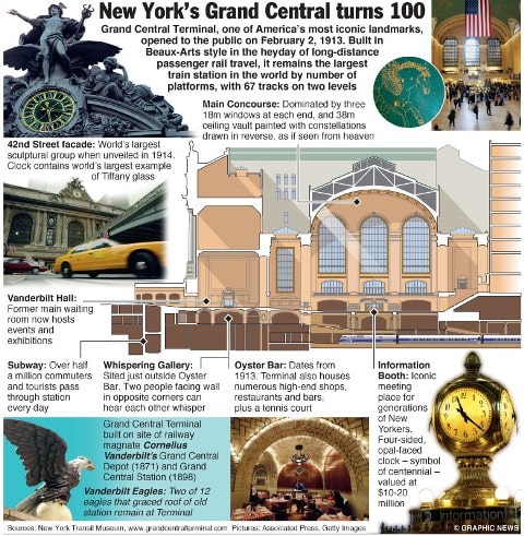 The world’s largest and most famous train station, the Grand Central Terminal celebrates its centennial this year. It will be marked by a year-long celebration including various events and exhibitons that will salute the past and future of this grand Beaux-Arts landmark.