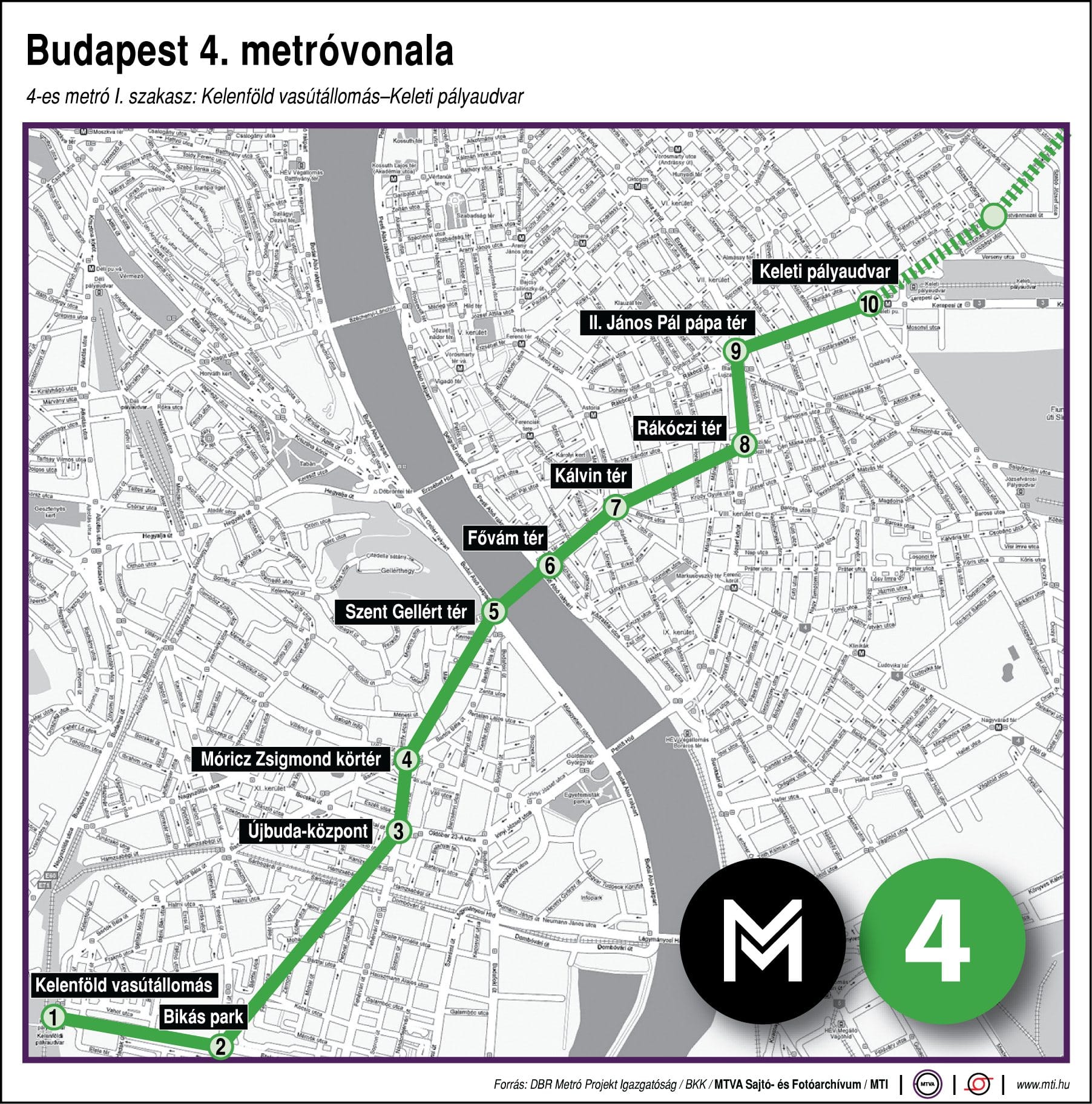 The subway covers the 7.4 km distance between the two terminals in 13 minutes and runs every 2-3 minutes in the rush hour. Passengers can transfer to Metro line 2 at Keleti subway station and Metro line 3 at Kálvin Square station. The public transport system was modified to provide transfers to the new subway line, consequently the changes to various lines across ten districts of the capital might cause some disruption.