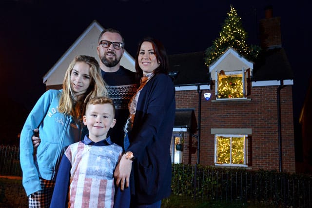 A family whose Christmas was ruined last year by a devastating burglary have this year been given the UK’s best Christmas tree. The staggering 7.5 m tall tree – so tall it goes through the roof – took 24 hours to install in the Penniston’s home and contains more than 100 metres of Christmas lights.