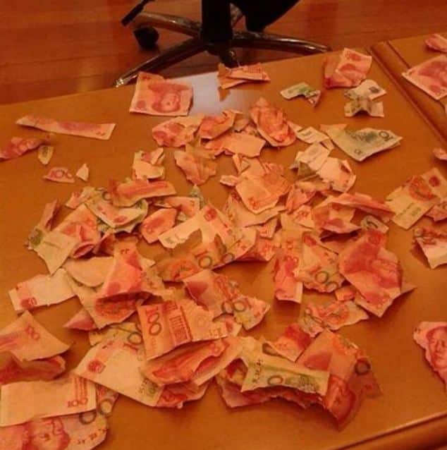 A Chinese toddler who was allowed to tear old books by his parents ripped up the family’s entire life savings when he found the money under a bed. The little boy, 4, was left alone by his mother Liu Fan, 28, in the bedroom of their home in Xi’an, Shaanxi province, West China. The curious boy found the cash – thought to be worth around £3,000 – in a box under the bed and proceeded to rip it to shreds while his parents were none-the-wiser in a room next door.
