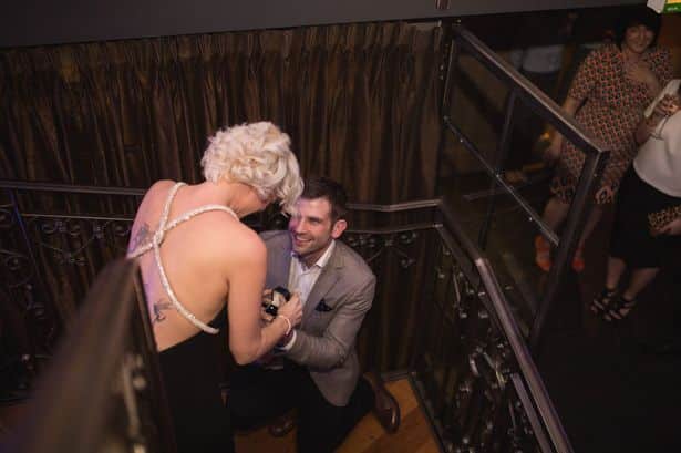 Michael Clark and Fay Brazendale’s family and friends turned up for what they thought was her 30th birthday. But as Michael brought out the cake, he astounded the 120 guests by dropping to one knee and proposing. Straight after accepting, tearful Fay revealed the wedding would be taking place there and then.