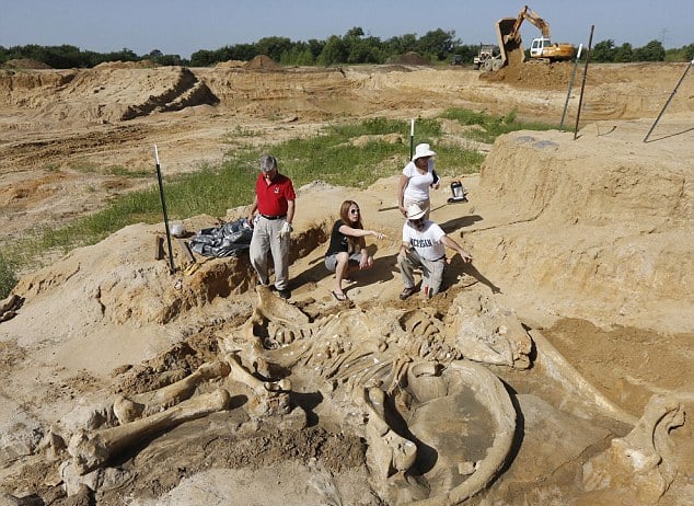 Experts believe the creature’s relatively small size – it would only have been around 9ft (2.7m) tall – shows it is a female mammoth. Tom Vance, a palaeontologist from nearby Navarro College, Texas, believes the animal died after she fell on her left side. Remarkably it appears as if the clearly visible skull, ribs and lower jaw have been relatively untouched bar a few missing leg bones.
