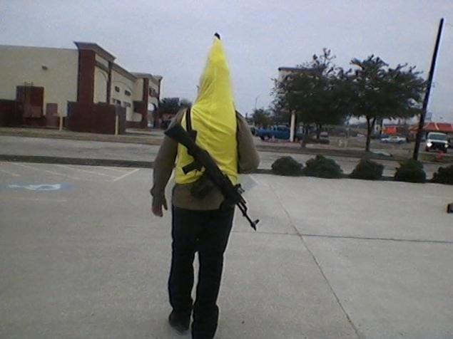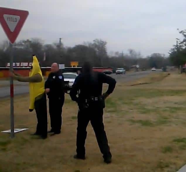 The slippery customer had nothing untoward planned and was merely trying to draw attention to the nearby Golden Triangle Tactical outlet. A man dressed as a BANANA brandishing an AK-47 RIFLE was stopped by police. But he wasn’t planning anything untoward – he was apparently advertising a nearby shop. And it sort of worked as the 18-year-old attracted lots of attention, albeit from the long arm of the law.