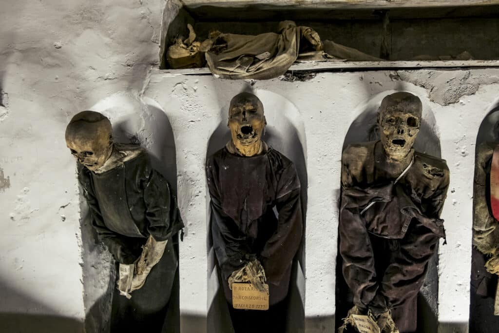 One of Sicily’s quirkiest charms nearby in the city of Palermo is in a crypt below its Capuchin monastery. The Capuchins, a branch of the Franciscan order, have a passion for reminding people of their mortality. Historically, when their brothers died, their bones were saved and put on display.