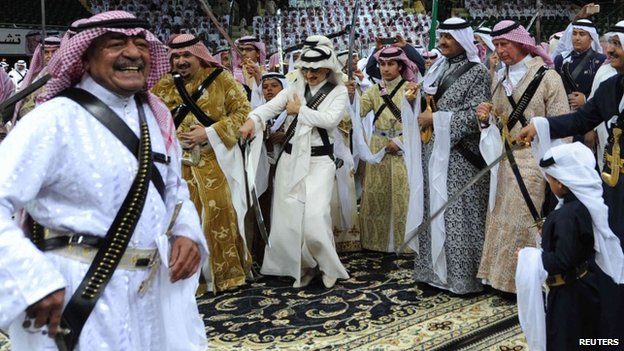 It is his second visit to the two nations in just under a year and his 10th official trip to Saudi since he first toured the nation in 1986. The Ardah features hundreds of Saudi Arabian men and boys dancing and singing in formation with swords in hand. The ceremony was performed to celebrate the Janadriyah Festival, an annual cultural event lasting about two weeks which marks all aspects of Saudi life and is being held this week in Riyadh. The prince’s host was Prince Muqrin bin Abdulaziz, the former head of the Saudi intelligence service, who was named as the second deputy prime minister by King Abdullah last year.