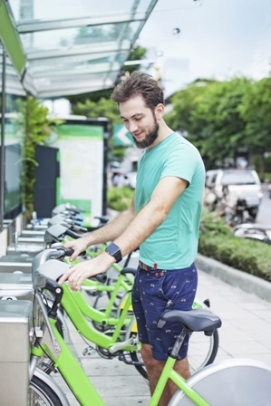 Man: Maybe I’ll give a try to the bikes for a short period then. It looks a real cheap way of getting around in the town. Why don’t we try them together? We could go for a nice ride in one of the parks at the weekend.