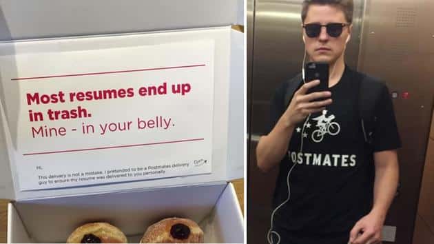 Lukas Yla, a 25-year-old Lithuanian marketing professional looking for work in San Francisco, said he’s already made 40 of the donut-resume deliveries to recruiters at area marketing agencies and tech firms by posing as a Postmates delivery person. On the outside, the packages look like a box of fancy donuts, which as you can imagine, is easily enough to get someone’s attention. On the inside, the recipient will find not just a few of the sugary dough rings, but Yla’s resume front and center. Genius, right?