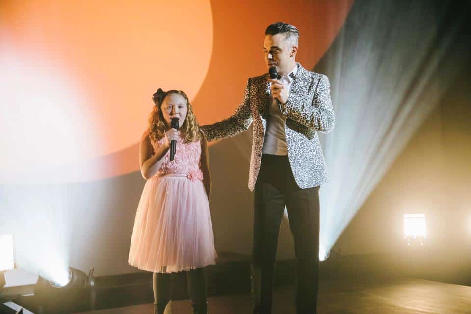 So, when Robbie appeared in front of the big screen with her nine-year-old daughter, Grace Bingham, singing a duet of his latest single Love My Life, she was left totally stunned.