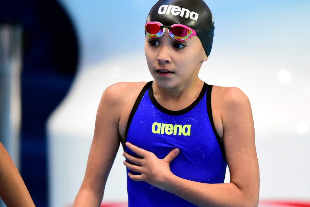 A 10-year-old girl has set a new record as the youngest swimmer ever to compete at a World Championships.
