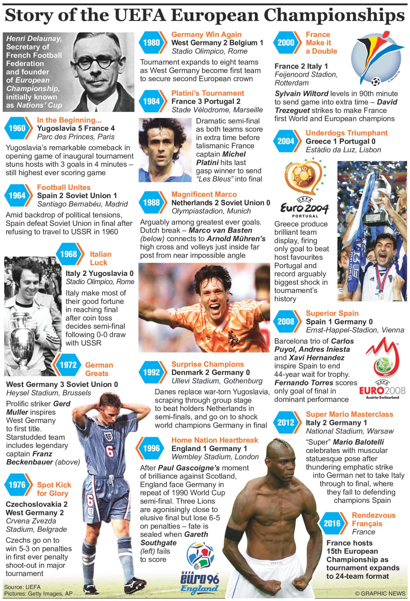 The first European Championship was held in 1960, following the idea of UEFA president Henri Delaunay. It was a rough start; recruitment of teams was not flawless, and support for the tournament took time to gain as well. However, in a few decades’ time, the “Euros” (called by that nickname since 1996) have grown to be the second most-watched football tournament in the world, with the last final followed by over 300 million people worldwide