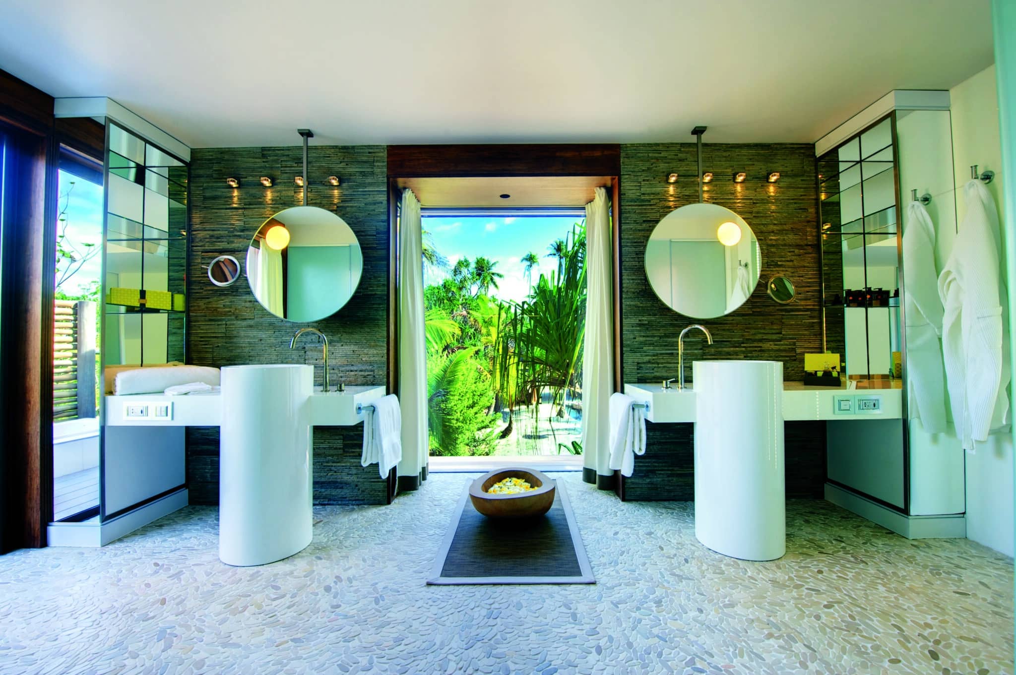 The resort can boast of a 7 km wide and 30 metres deep lagoon and the 35 luxury villas are equipped with solar panels, bio-fuel generators and a pioneering sea-water air conditioning system. The buildings, surrounded by crystal-clear waters and white-sandy beaches, are integrated within the natural landscape with a fluid indoor/outdoor design. The villas’ timbered walls and native gardens are surrounded by exquisite scenery. Rates include accommodation, spa treatments, all meals in all dining venues, most beverages and the option of 24-hour dining in the privacy of your villa.