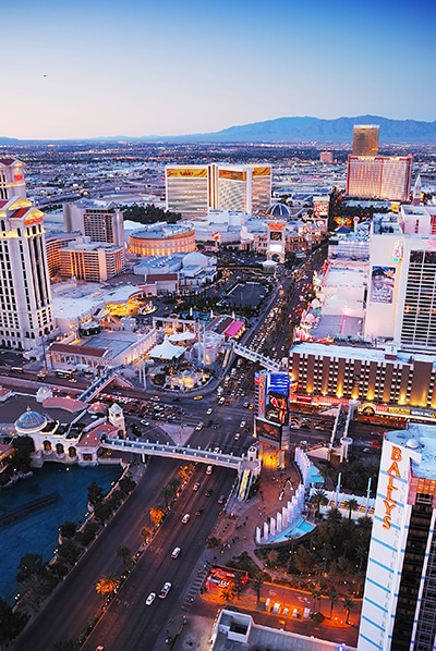 Las Vegas is built on the North and South Strip which is about 3 miles long from end to end. Getting about on foot is easy and is advised so that you don’t miss out on any of the street side entertainment that can be found at some of the biggest hotels in the world. Each hotel is individually ‘themed’ thus giving the impression that you can visit every major city in the world in just one place.
