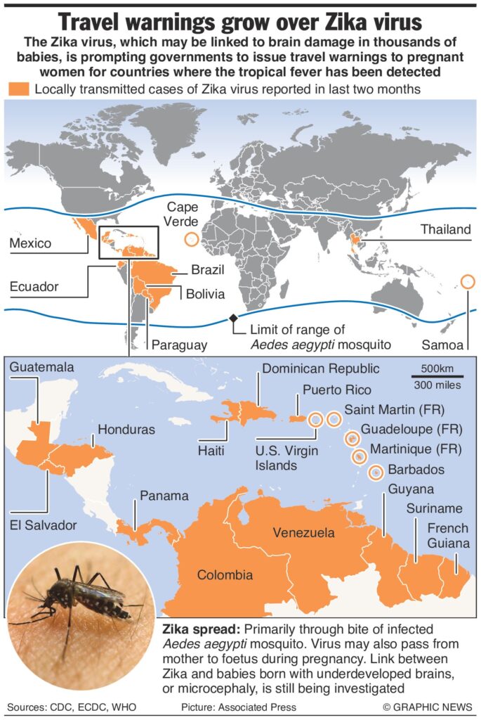 Since the mosquito-borne disease was first detected in Brazil in May 2015, the virus has spread to more than 20 countries. The biggest concern is the surge in levels of microcephaly – babies born with abnormally small heads – and the rare nervous system disorder Guillain-Barre syndrome. The link between the virus and these disorders has not been confirmed, but Dr Chan said it was “strongly suspected” and was “deeply alarming”. And she warned the situation could yet deteriorate as “this year’s El Nino weather patterns are expected to increase mosquito populations greatly in many areas”.