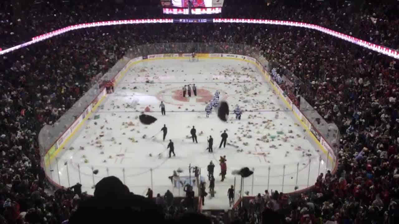 2. The rink was bombarded by fans with thousands of stuffed animals.
