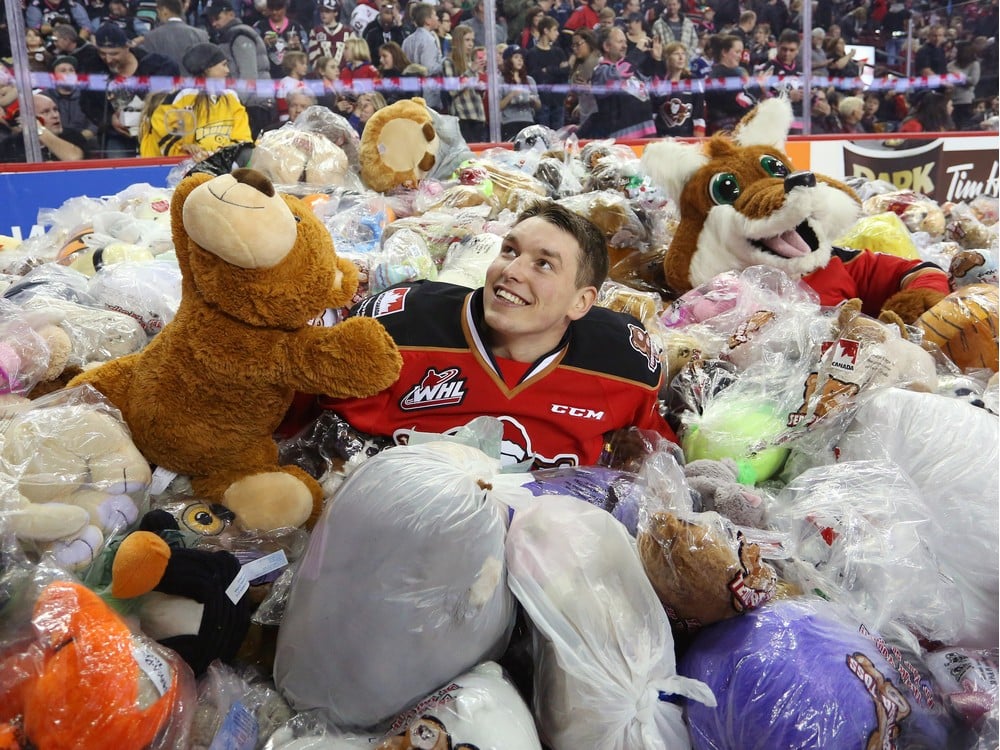 Last Sunday, a Calgary Hitmen ice hockey game against the Swift Current Broncos was interrupted by some rather unusual circumstances. After Calgary’s Jordy Stallard scored a goal two minutes and 41 seconds into the second period, fans bombarded the rink with thousands of stuffed animals.